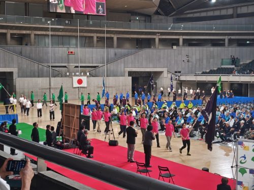 2025年5月10日(土)、東京体育館メインアリーナ千駄ケ谷で、第78回東京都スポーツ大会・第26回東京都障害者スポーツ大会の合同開会式が開催されました。東京都内の区・市・町あわせて51団体が参加し、私は表彰者としてご招待を受け、町田市トランポリン協会会長として出席いたしました。