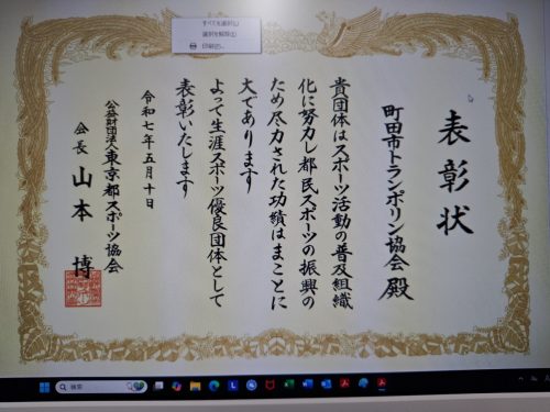 当日は多くの関係者が一堂に会し、各地域でのスポーツ振興への思いが感じられる盛大な式典でした。その場で、東京都スポーツ協会より表彰をいただき、大変光栄に思います。